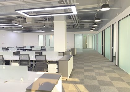 房间 状态:精装修,透明玻璃大门,吊顶,室内总经理室、经理室、会议室等间数个,另加敞开式办公工区,房间户型方正无柱子,保养比较好,干净整洁,也可按照贵司风格做适合您风格的装修,使用率达百分之78%,落地玻璃窗,大面积采光,室外无遮挡。