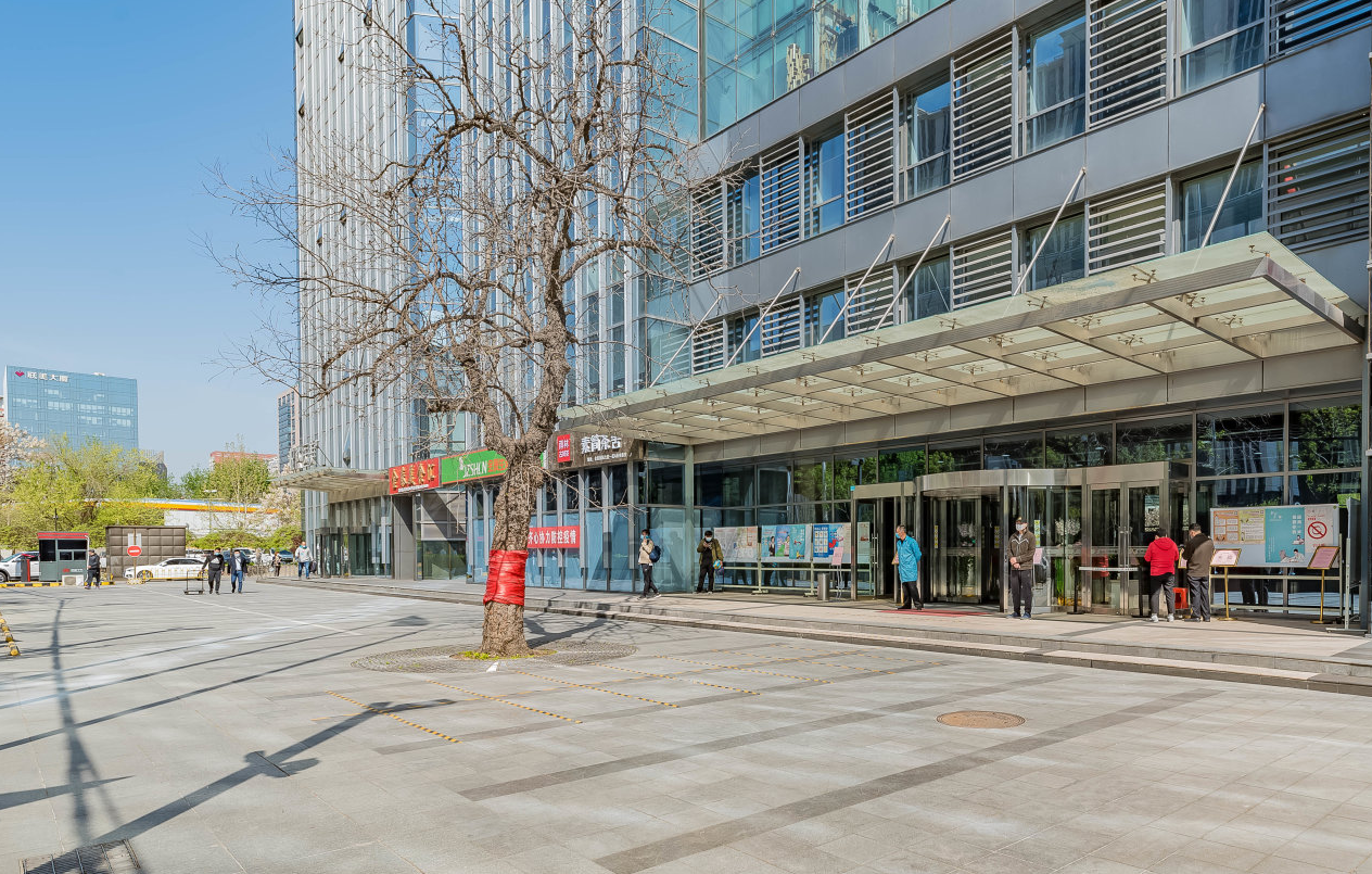 金泰大厦北侧为独栋办公楼,总建筑面积为2,434平米.地上三层.层高4.8米.大落地窗设计,可从楼上俯视800平精致水景,独 立中央空调系统。电梯可直达地下车库,是追求低密度、静谧、独立办公之首选。